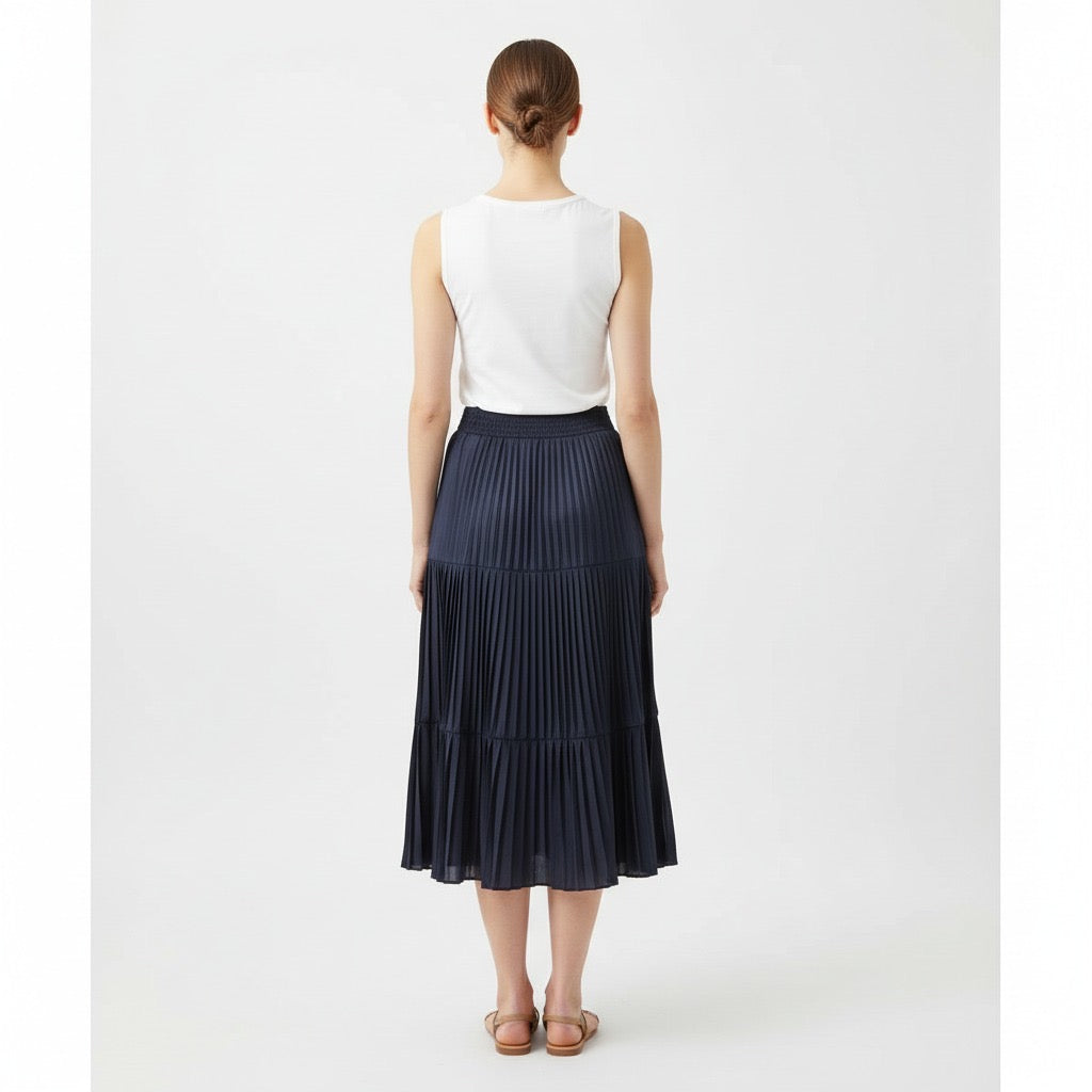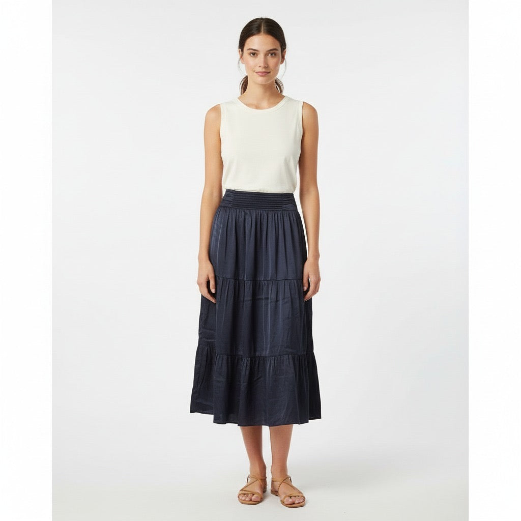 Falda midi con goma en cintura.