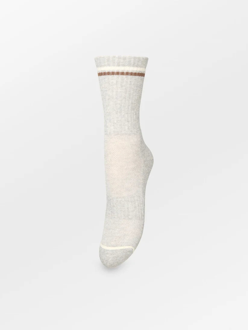 Las Sporty Cotta Sock de BeckSöndergaard combinan estilo y funcionalidad en un diseño pensado para el día a día. Confeccionadas en suave algodón cardado con mezcla de poliamida y elastano, ofrecen comodidad y transpirabilidad durante todo el día. Su delicado patrón calado las hace más ligeras y femeninas, mientras que las franjas en contraste en la parte superior aportan un aire deportivo y contemporáneo.