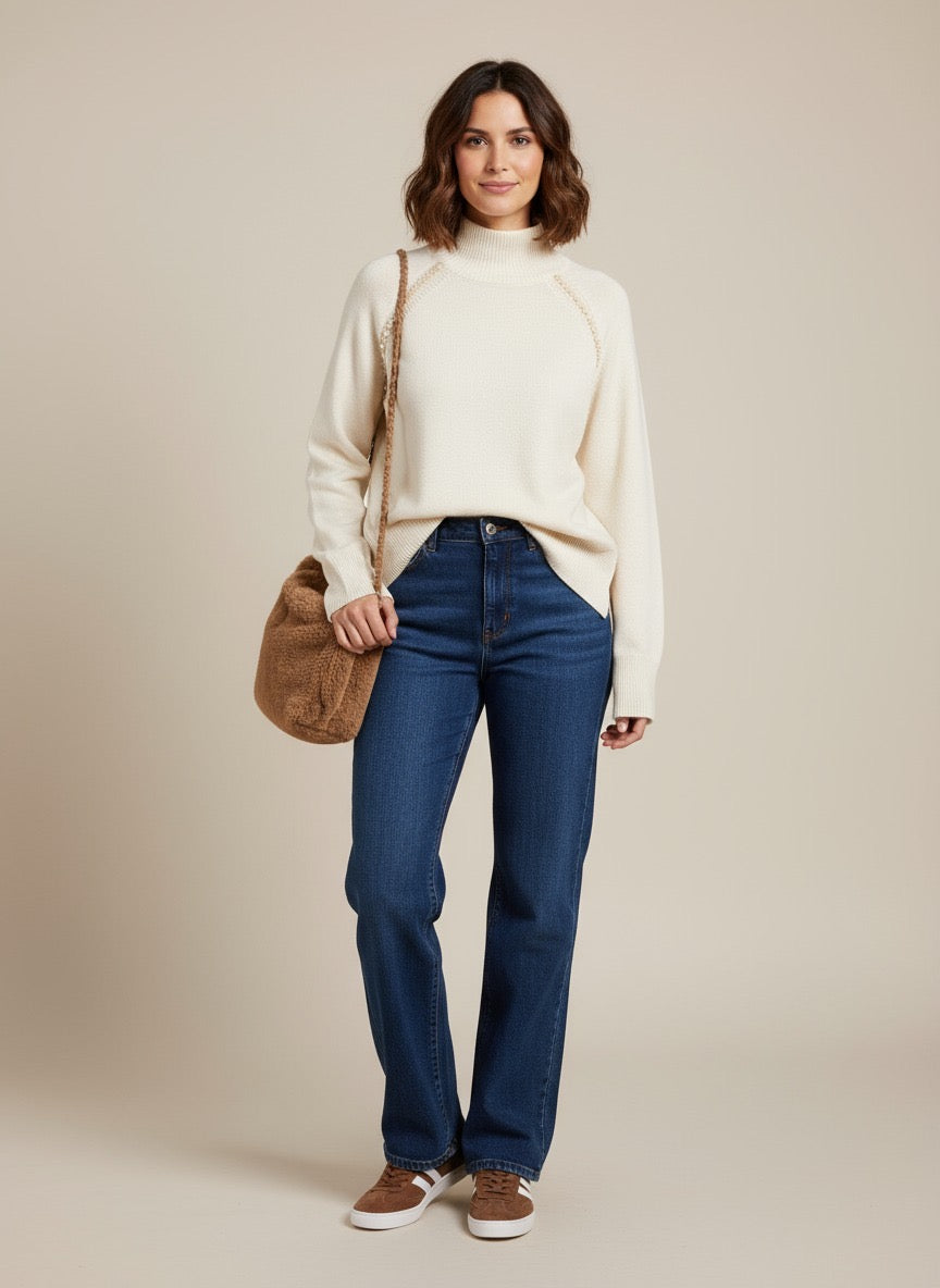 Jersey manga larga con cuello alto y ribete en hombros.