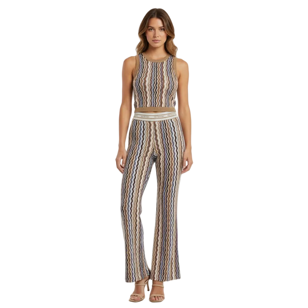 Pantalón ligeramente acampanado, estampado geométrico y goma en cintura.