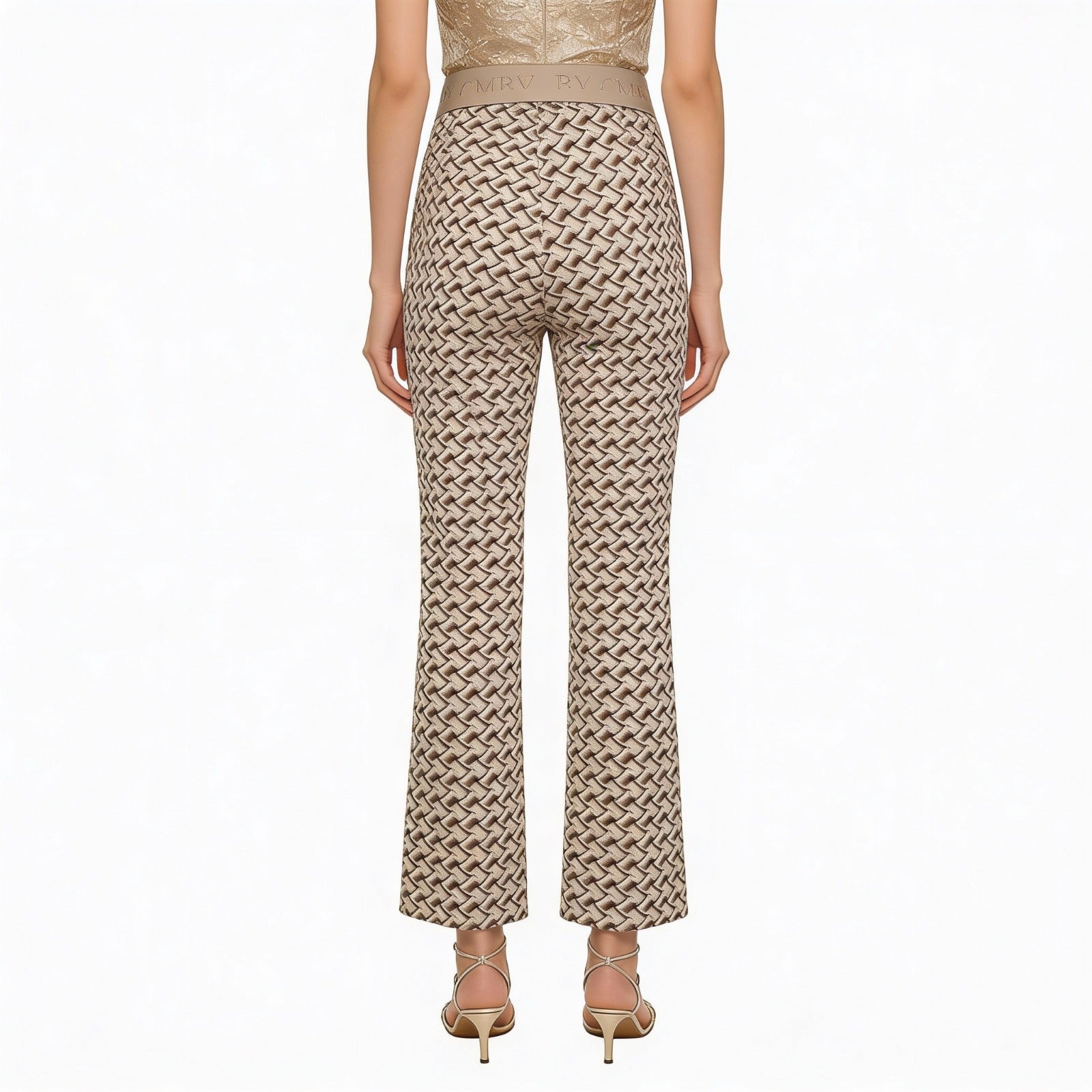 Pantalón ligeramente acampanado estampado geométrico con goma en cintura.