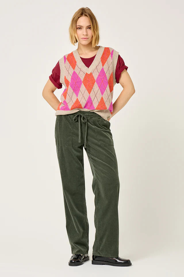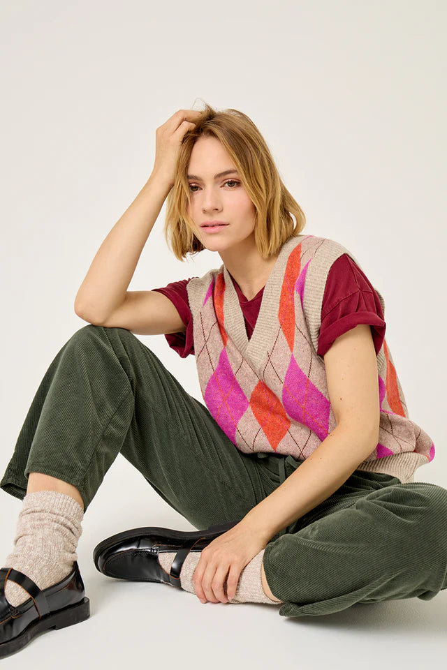 Un guiño retro con espĂritu contemporáneo. Este chaleco de corte recto y escote en V es la capa perfecta para jugar con superposiciones: sobre camisetas básicas o camisas sastreras. El diseño sin mangas y las sisas rectas realzan la silueta y permiten un look versátil, ya sea relajado con pantalones de pana o más elegante con denim oscuro y mocasines.