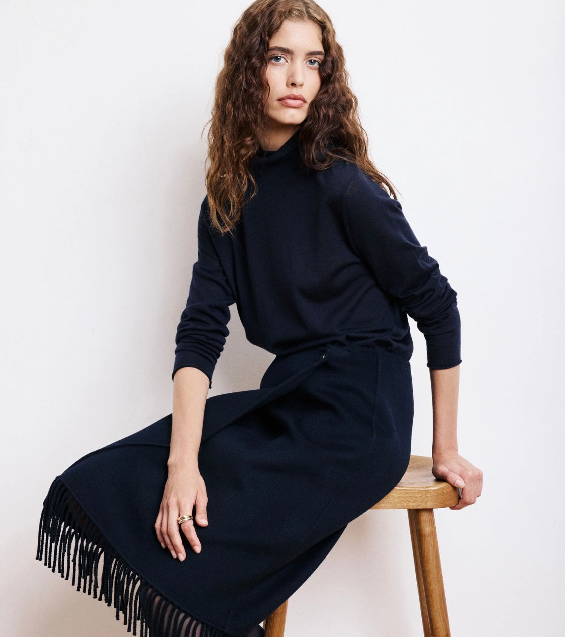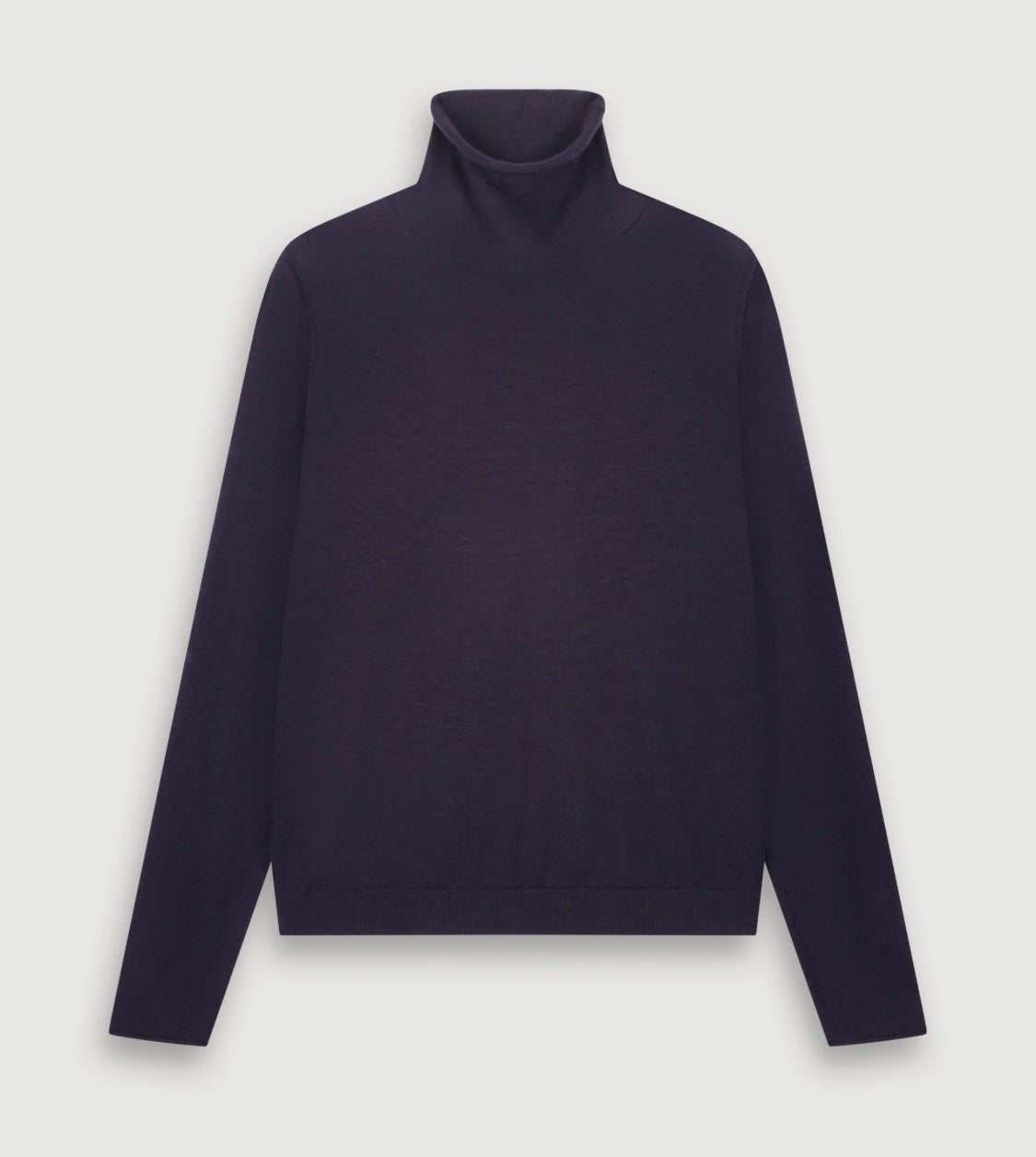 Suéter ajustado para mujer con cuello alto. Costuras en el centro de la espalda y acabado de bordes impecables.