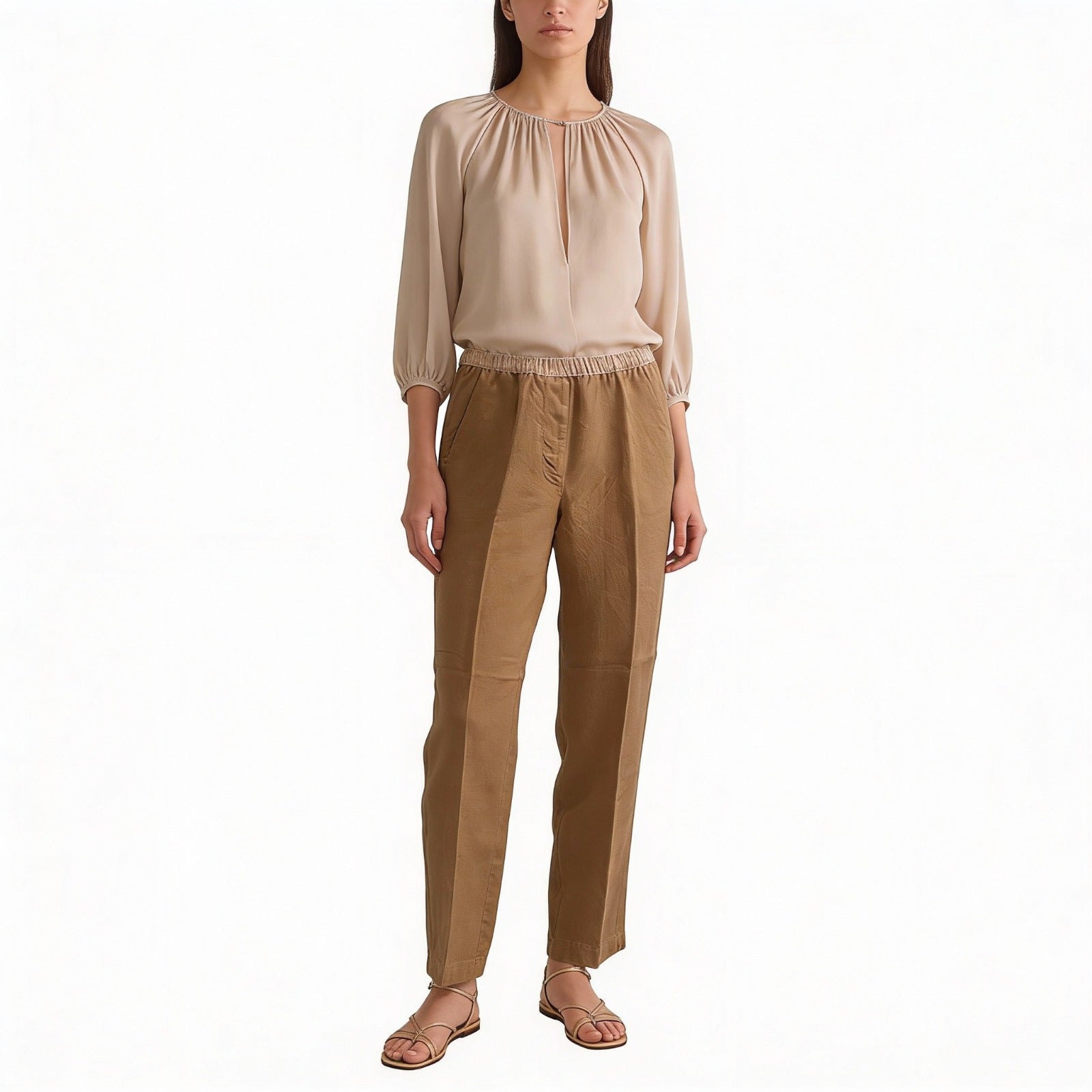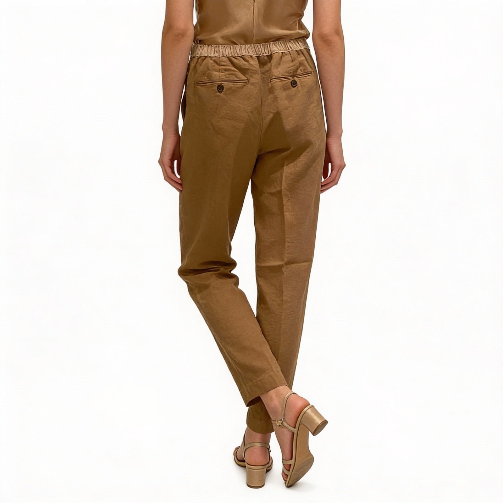 Pantalón recto tobillo con goma en cintura y bolsillos laterales.
