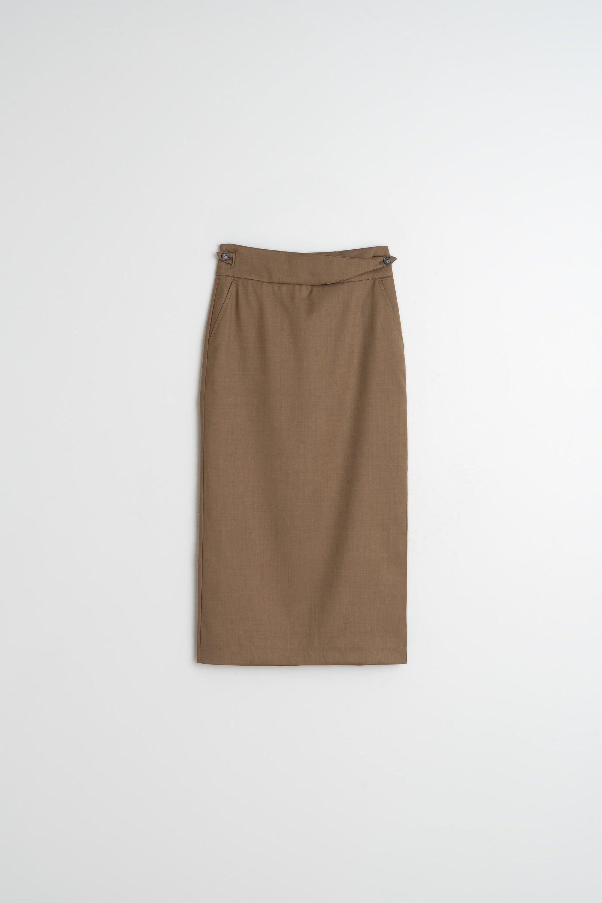 • Cintura alta con cierre abotonado y cinturilla cruzada.