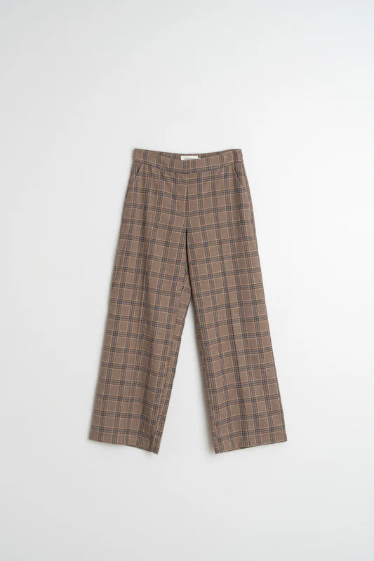 El pantalón paty vuelve esta temporada, con fit regular en cuadro tartán. Con pernera recta y un nervio central que le da el aspecto al clásico pantalón de traje pero con un toque renovado.