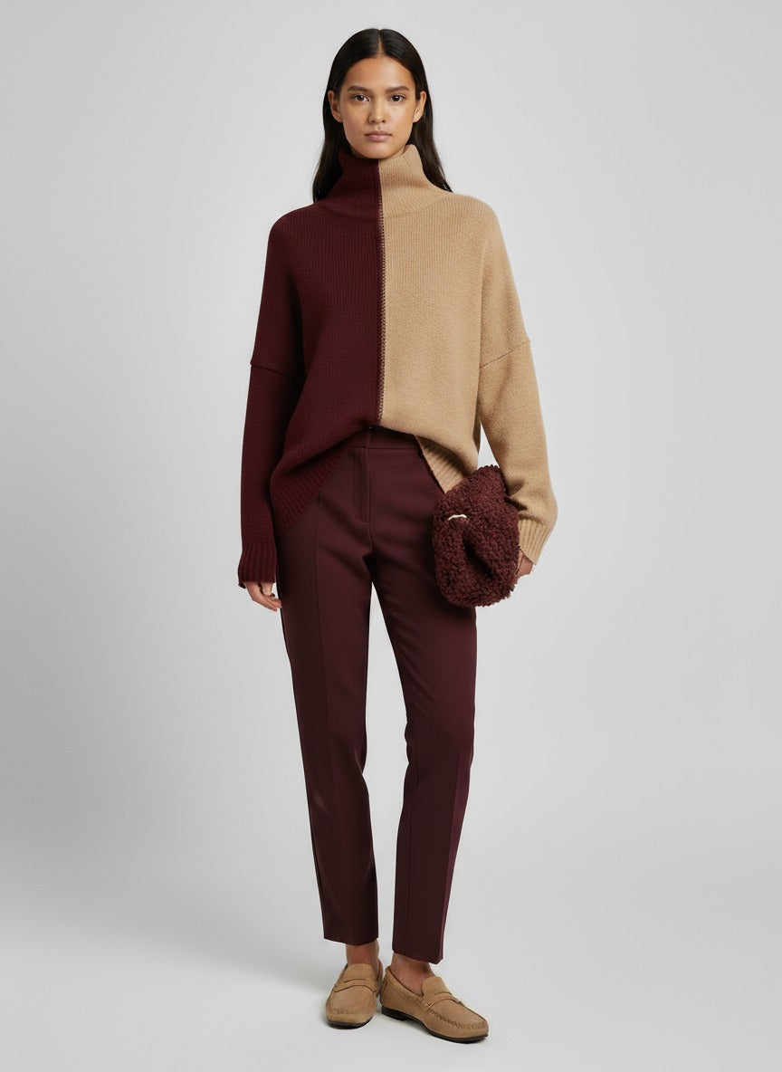 Tirar de col roulé Pull Tila Bloque de color Avoine Coupé de gran tamaño Composición : tirar 100% cachemire 4 hilos de intarsia déjaugé bordado principal