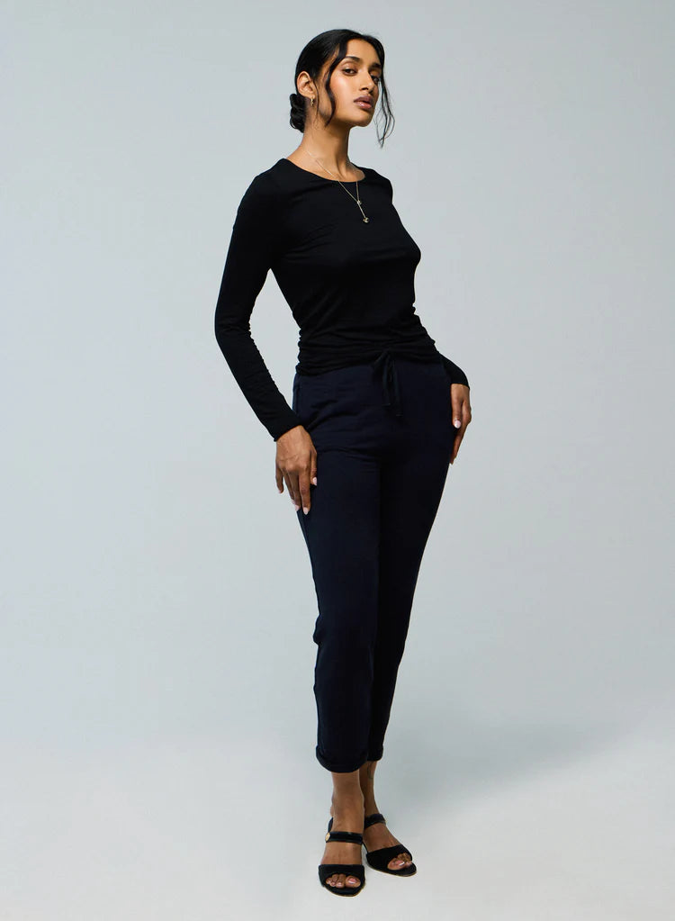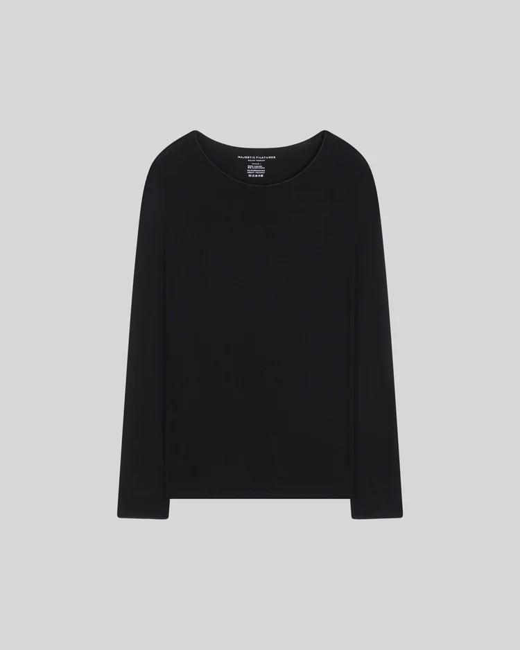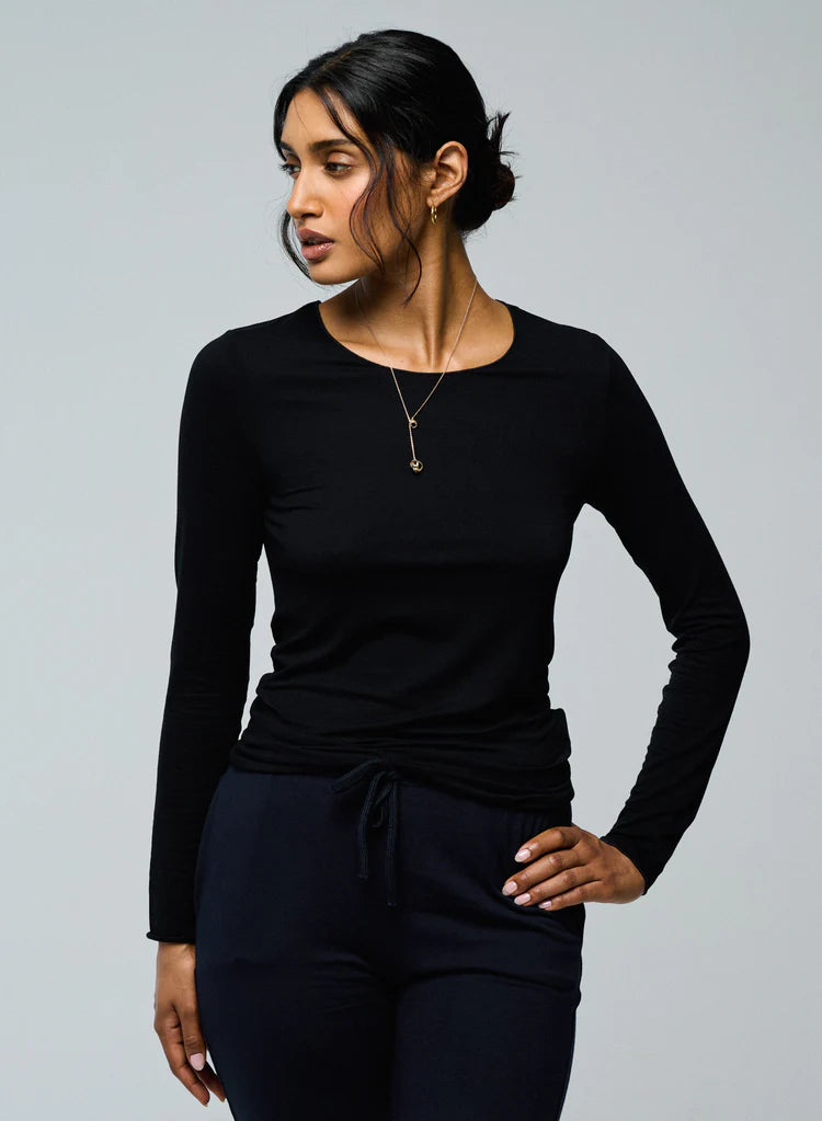 La camiseta negra que no puede faltar en tu armario. Confeccionada en viscosa (94%) de origen natural y un toque de elastano (6%) para máxima comodidad, esta prenda es tan suave que no querrás quitártela.