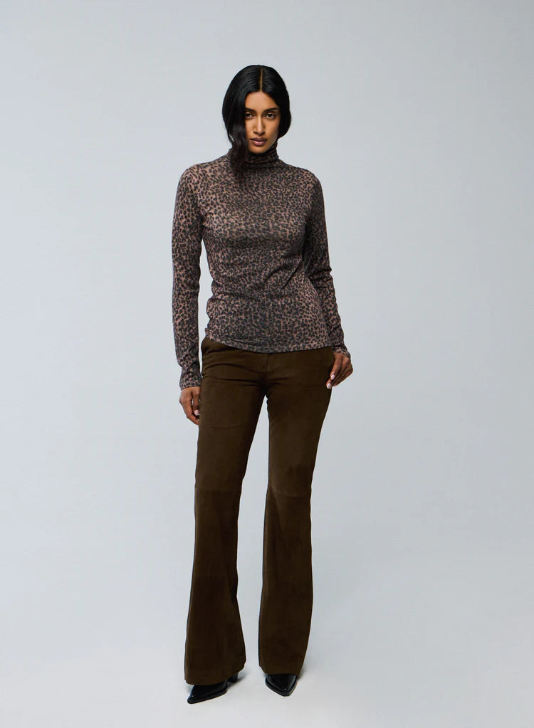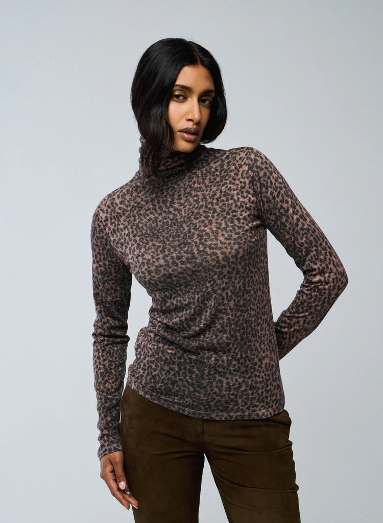Una prenda exclusiva y refinada que combina la suavidad del cachemire con la ligereza del algodón orgánico. Esta camiseta de manga larga se distingue por su estampado léopard en delicado tono rosa, un guiño al glamour más contemporáneo. Su cuello roulé estiliza la silueta y lo convierte en un básico atemporal con un toque sofisticado.