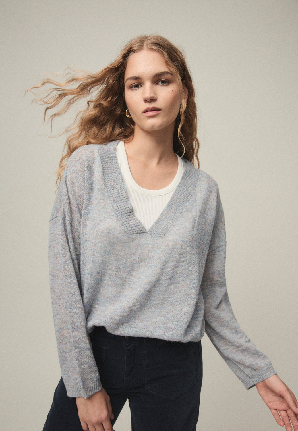 Pantalón largo confeccionado en un tejido velvetón. Cinturilla plana con bragueta, bolsillos en delantero y camal recto