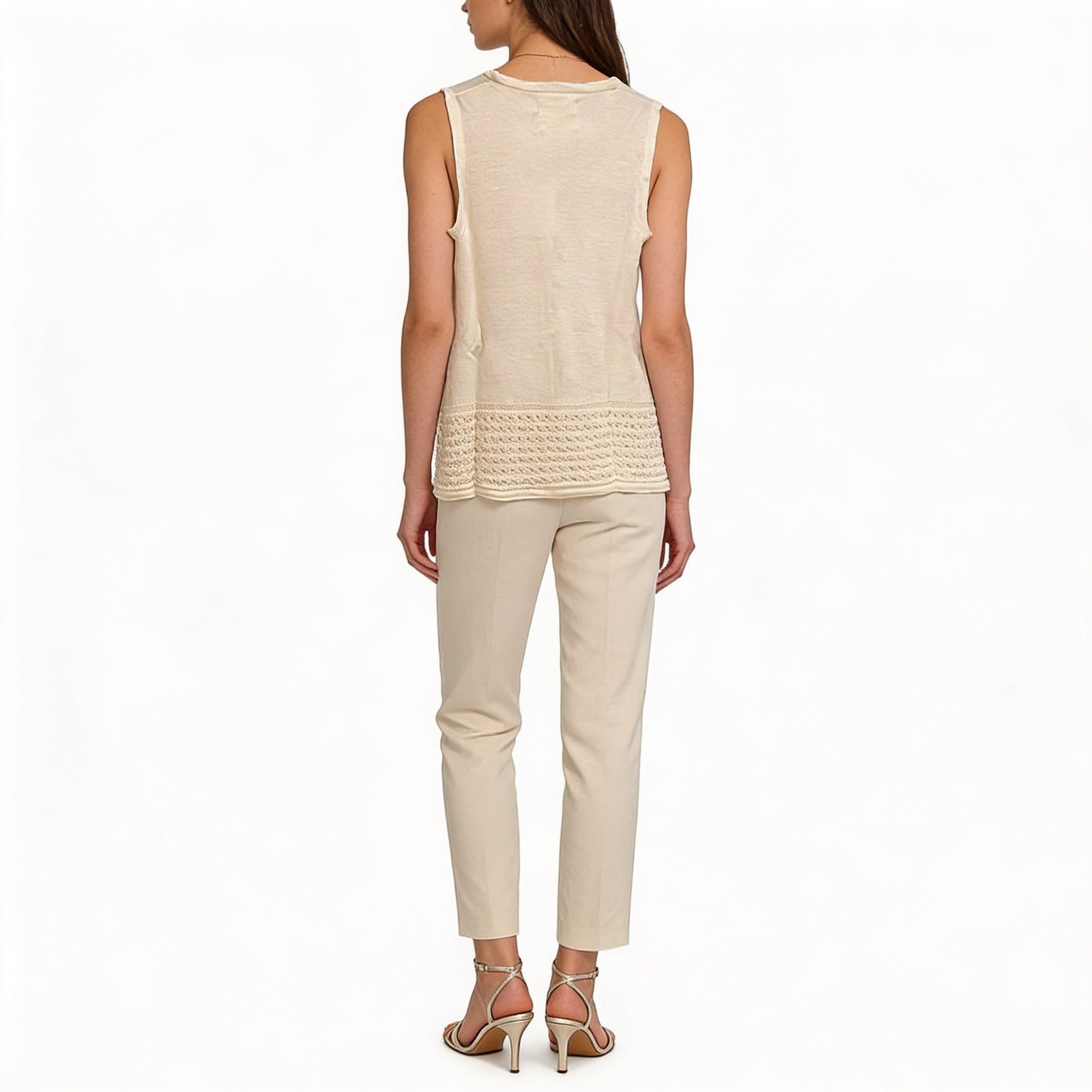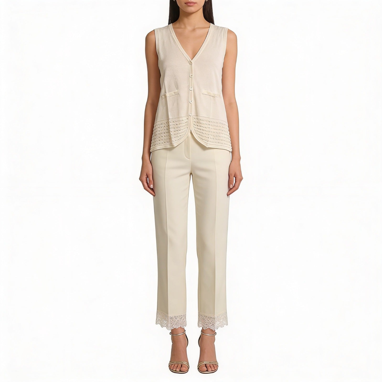 Chaleco con bolsillos delanteros y parte inferior crochet.