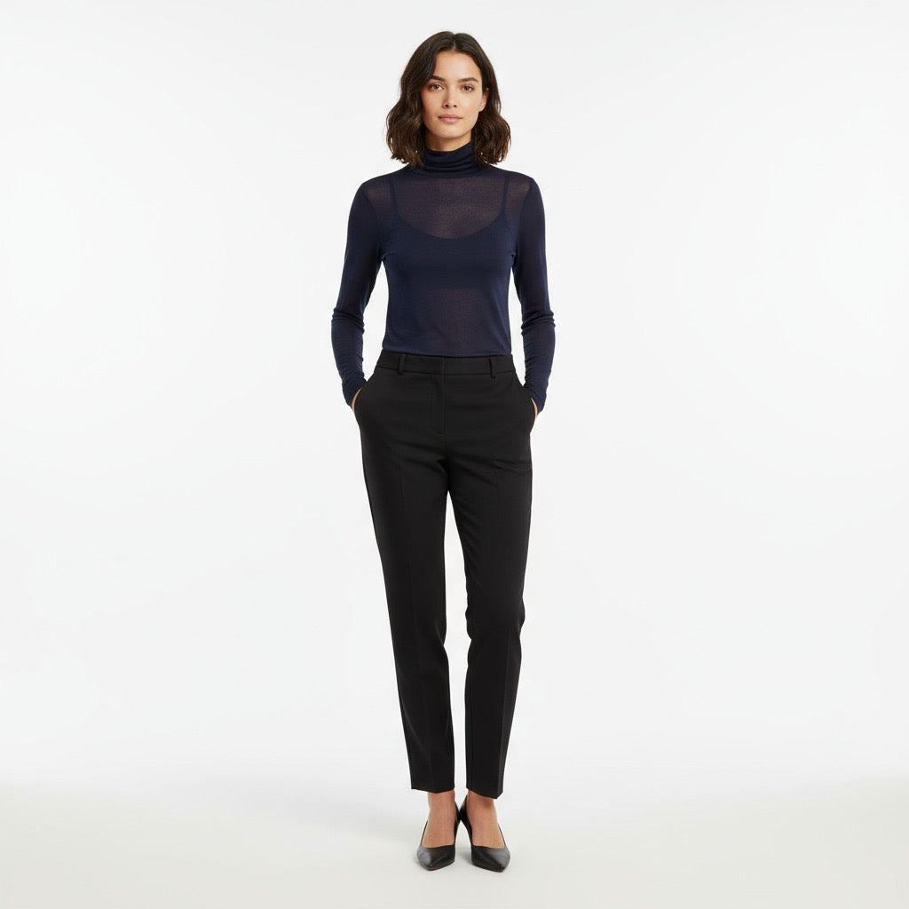Jersey manga larga y cuello largo ligeramente trasparente.