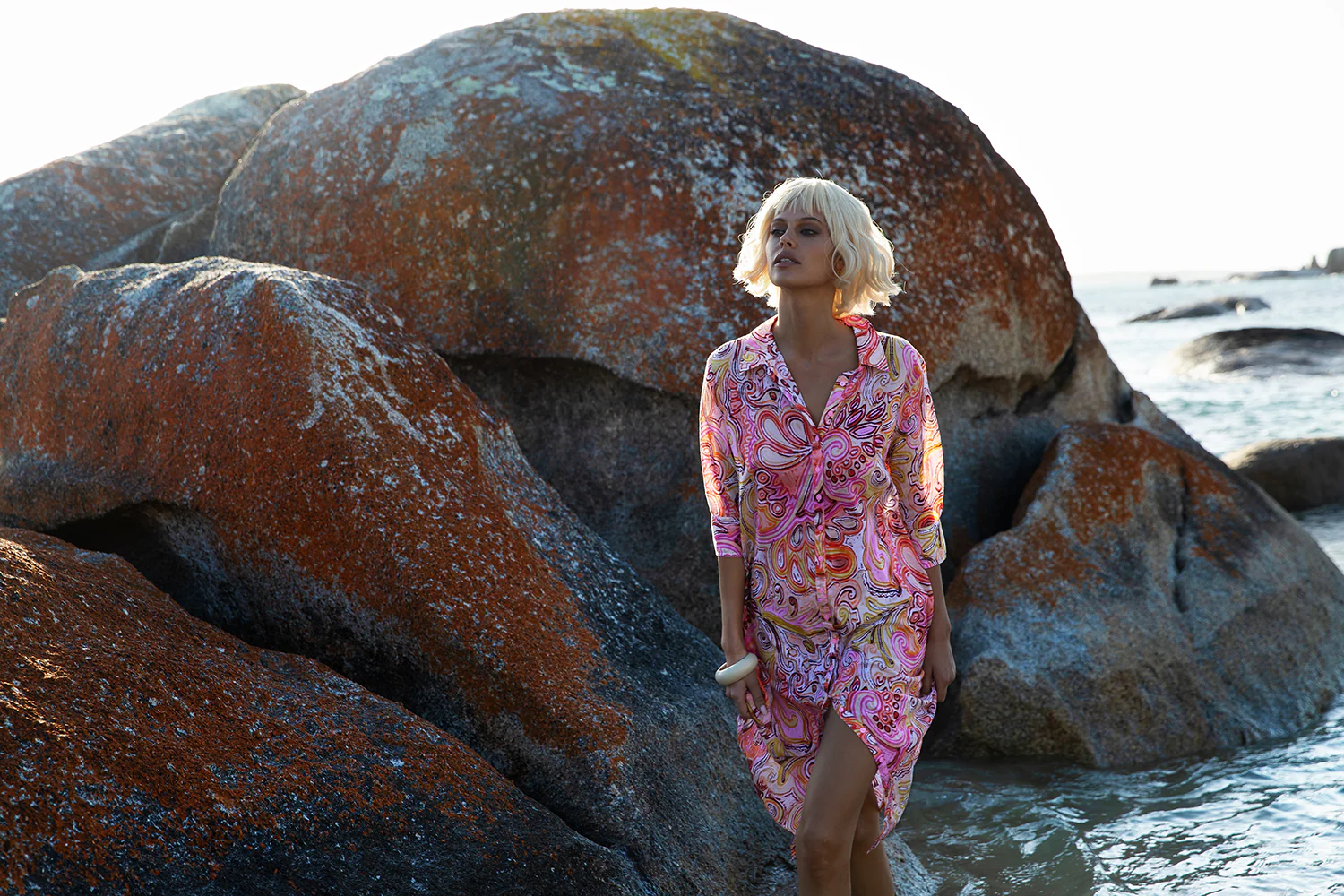 Confeccionado en 100 % algodĂłn lavado, el Daisy es un vestido camisero informal con botones, un corte fluido y largo, cuello suave y prácticos bolsillos laterales. Diseñado para facilitar la libertad de movimiento y comodidad durante todo el dĂa, es ideal para un look relajado en vacaciones.