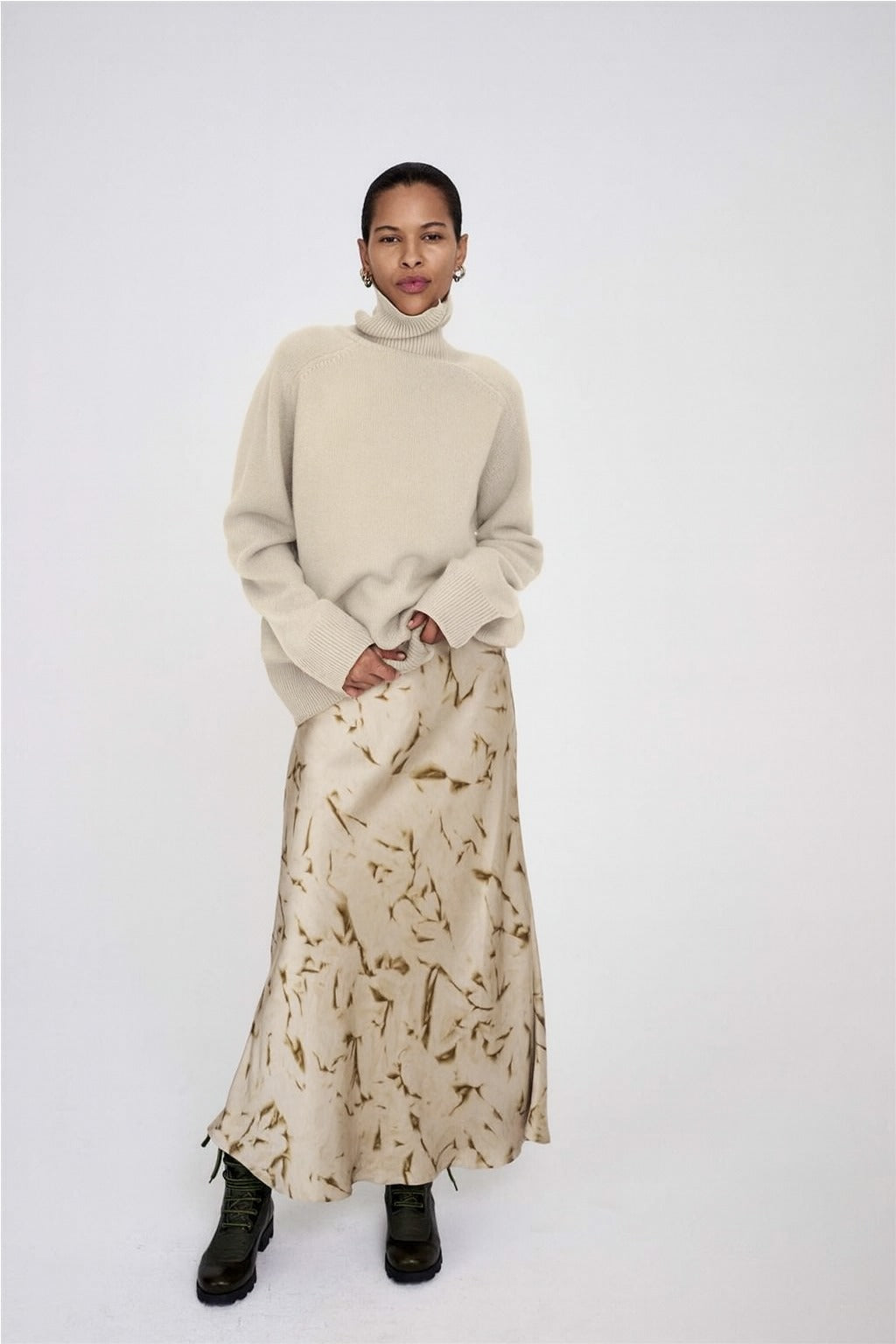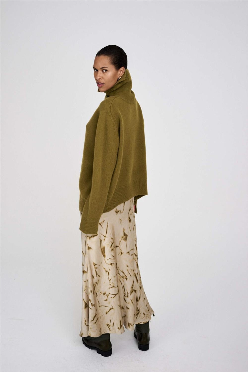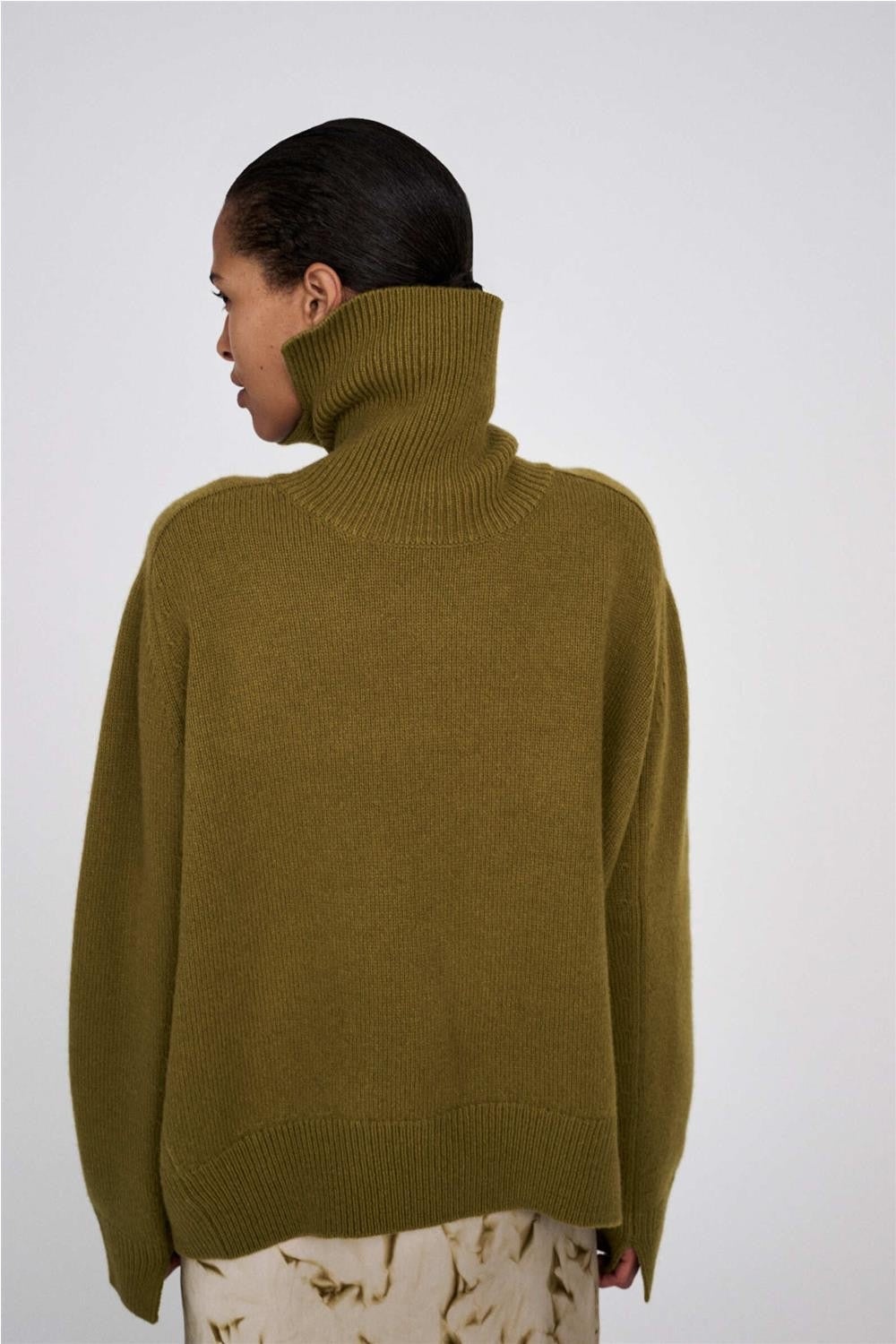 Jersey de punto en lana, cuello alto en canalé, manga rangla, corte oversize. Composición: 100% RWS Lana.