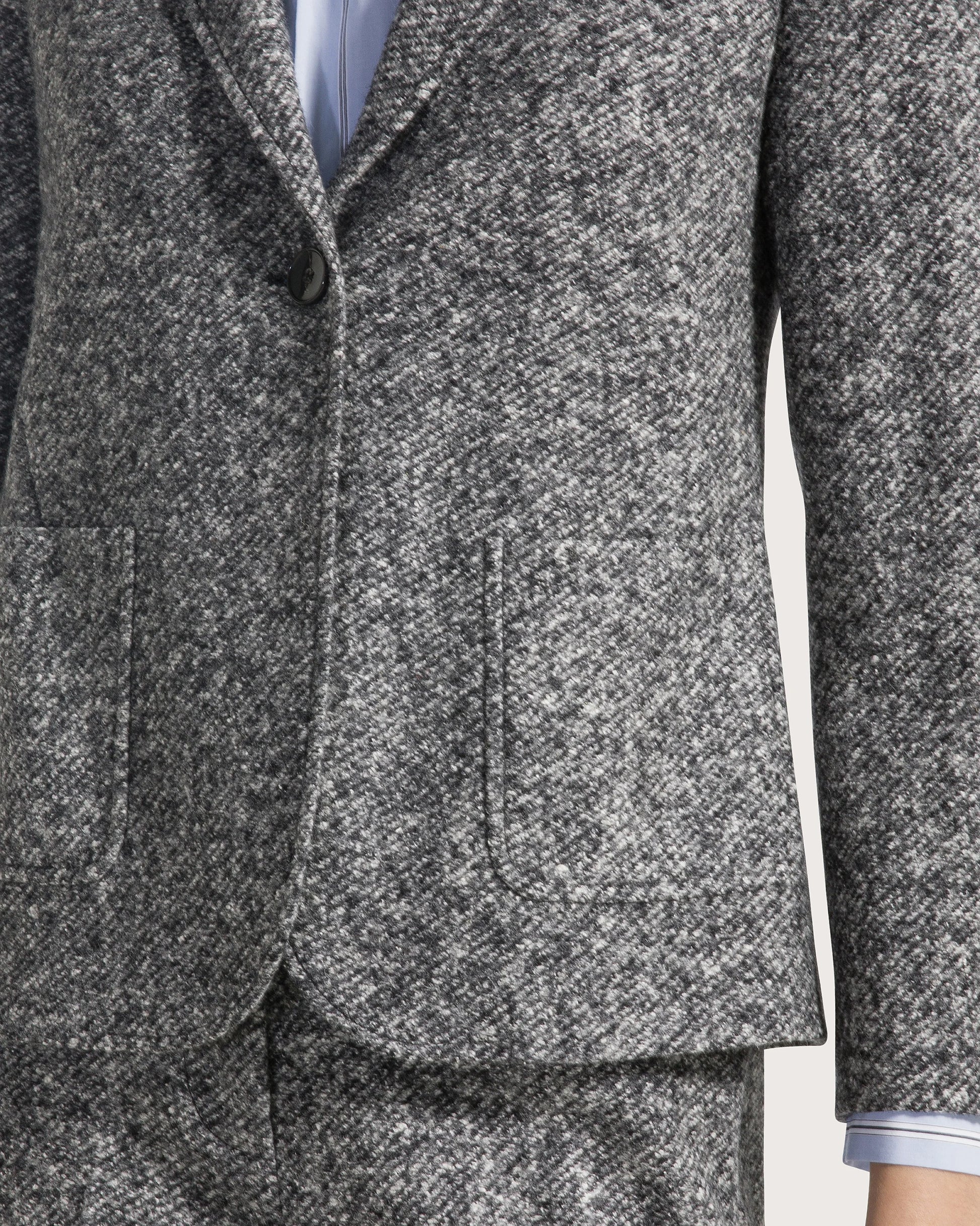 Un básico sofisticado del armario femenino, versátil para el día y la noche. Ideal para combinar con pantalones de vestir, faldas lápiz o denim premium, elevando cualquier conjunto con un toque refinado. Su tejido en mezcla de lana virgen, seda y poliéster garantiza caída impecable, suavidad y durabilidad.
