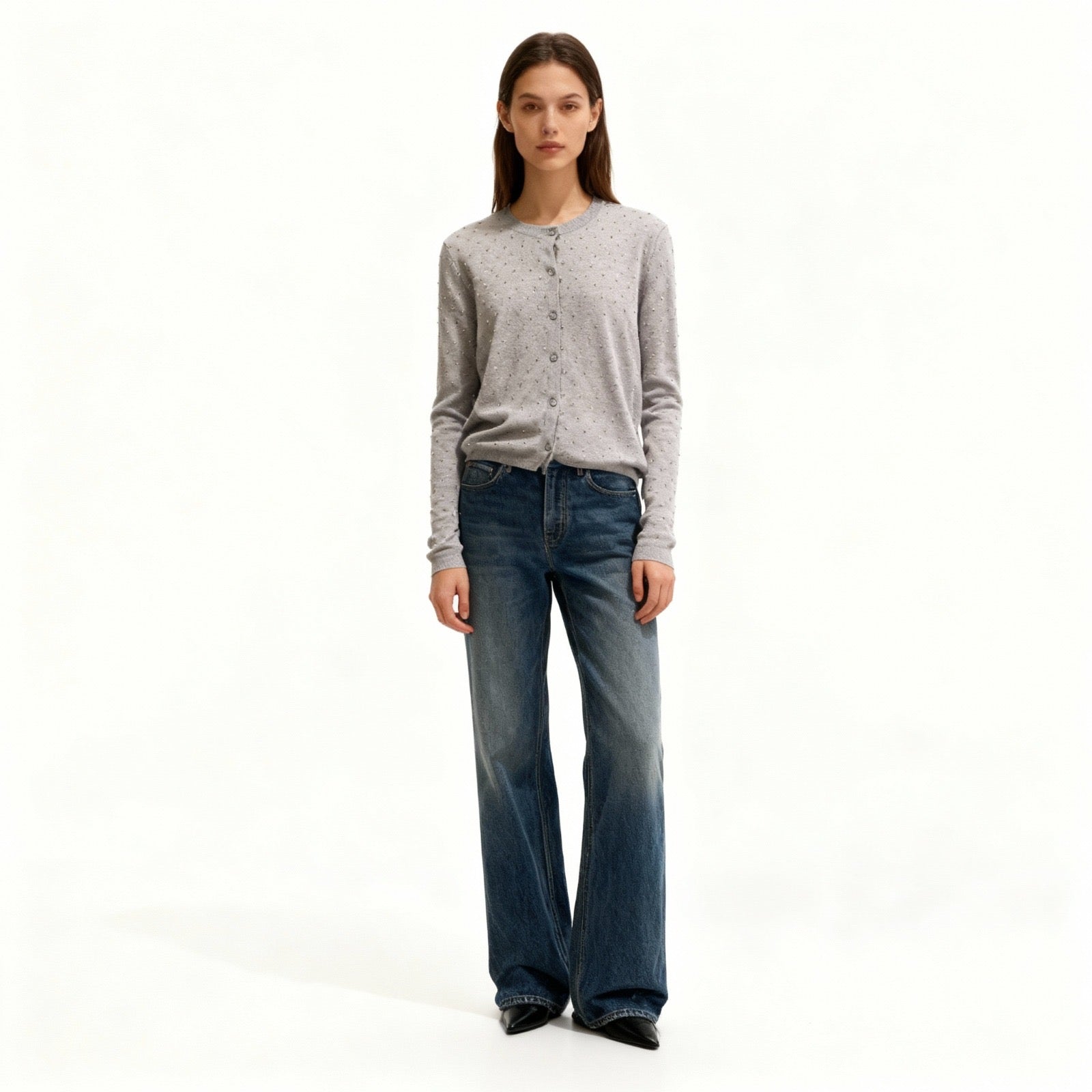 Cárdigan de cuello redondo con setenta adornos de cristal.