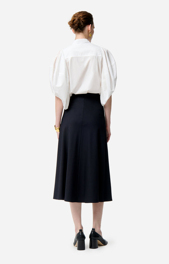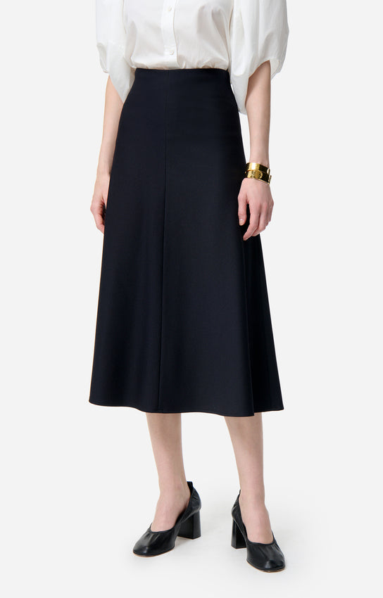 La falda BOUSHRA es la expresión de una elegancia atemporal. Su corte acampanado y la caída fluida estilizan con naturalidad la silueta, mientras que el largo midi aporta un aire refinado y versátil, ideal tanto para el día como para la noche. Un diseño con volumen sutil que combina feminidad y ligereza en cada movimiento.