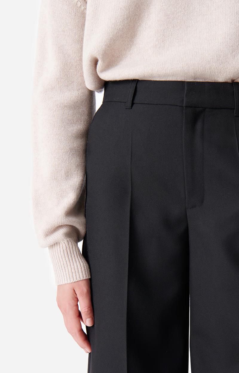 El pantalón Dulce, de corte recto y cintura alta, combina el aspecto sofisticado y trabajado de un pantalón de sastre con la comodidad de un pantalón de pierna ancha, ideal tanto para el trabajo como para el fin de semana. De color negro, estos pantalones retoman los códigos de la sastrería con una silueta recta y elegante gracias a sus bonitos pliegues en la parte delantera.