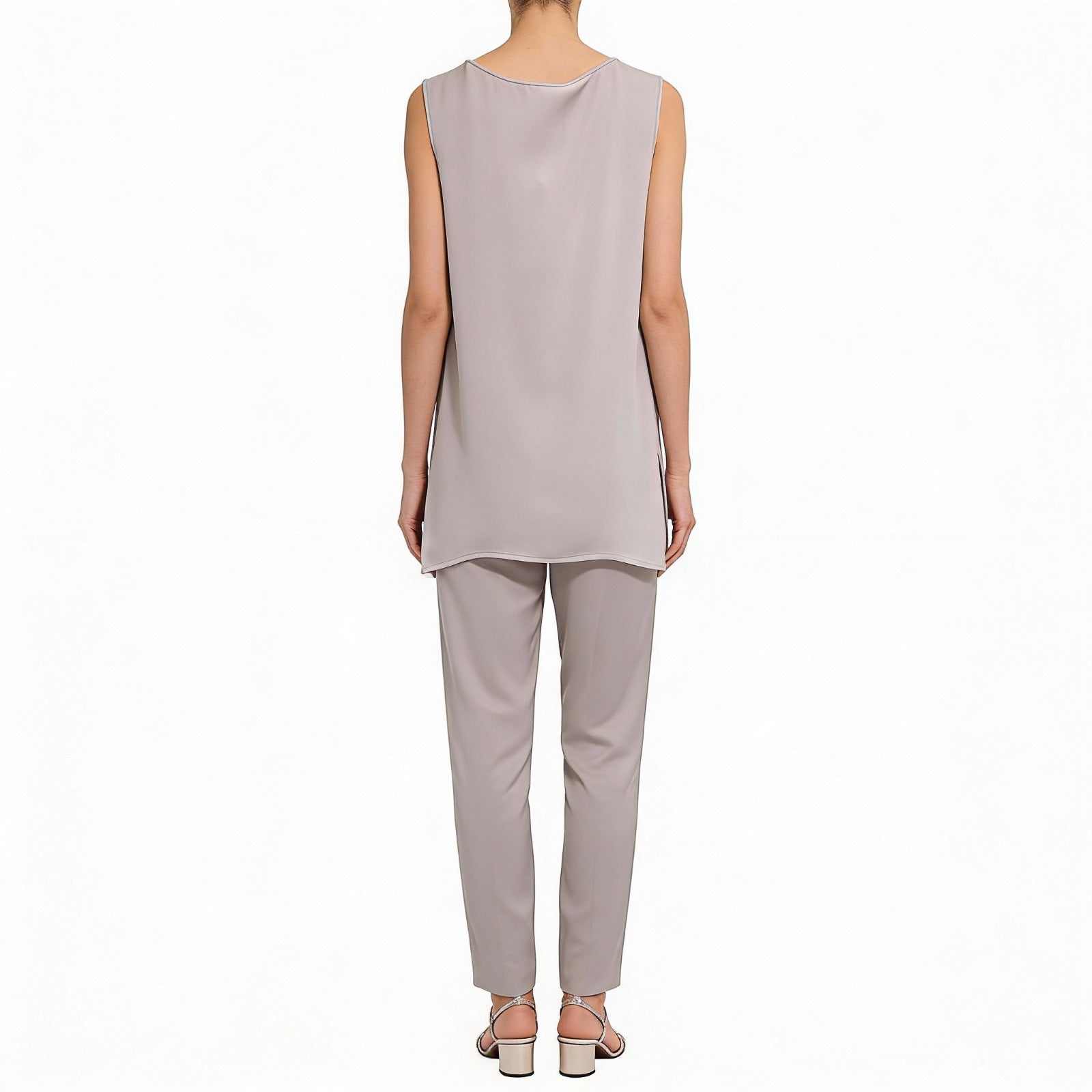 Blusa sin mangas, larga con aberturas laterales.
