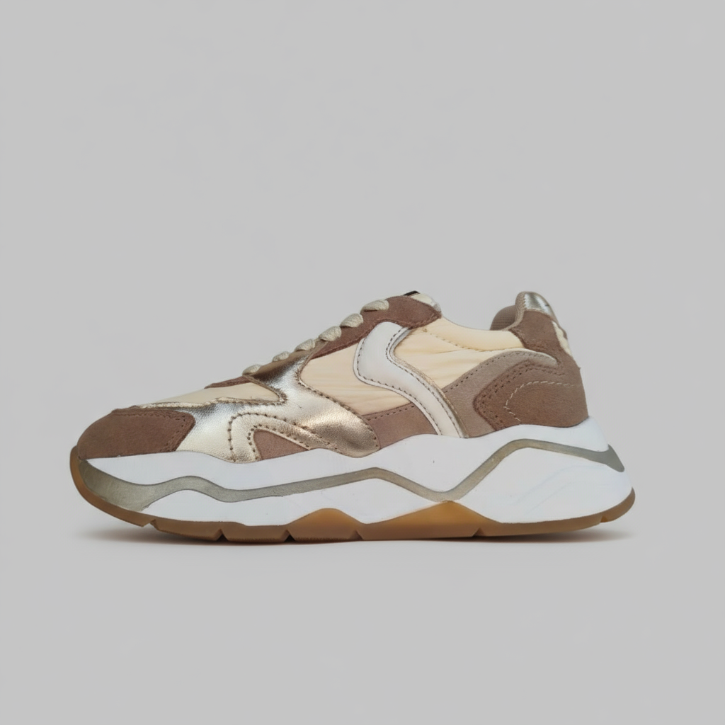 Sneakers Club 119 son una opción cómoda para estar a la moda. Las incrustaciones, la superposición y el juego de costuras contorneadas hacen que sean únicas. Su forma deportiva se realza gracias a la combinación de tejido técnico transpirables y detalles dorados. El look se completa con la llamativa suela de goma ultraligera con borde contorneado.